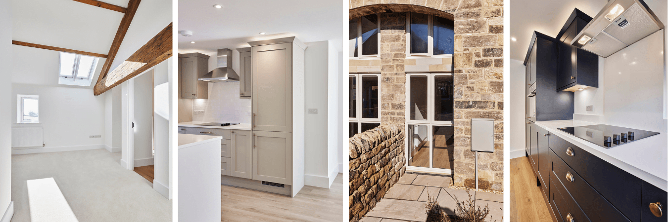 Both properties have been styled with beautiful kitchens, quartz worktops, luxury flooring and original real oak beams. The specification also includes energy-efficient technology, premium fixtures, and contemporary interior design.